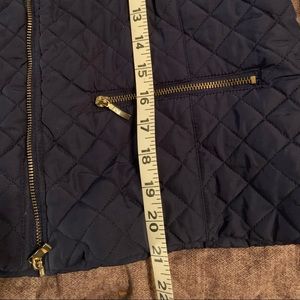 Cute navy cropped quilted jacket for those cool evenings. All the zippers work and the pockets are functional.