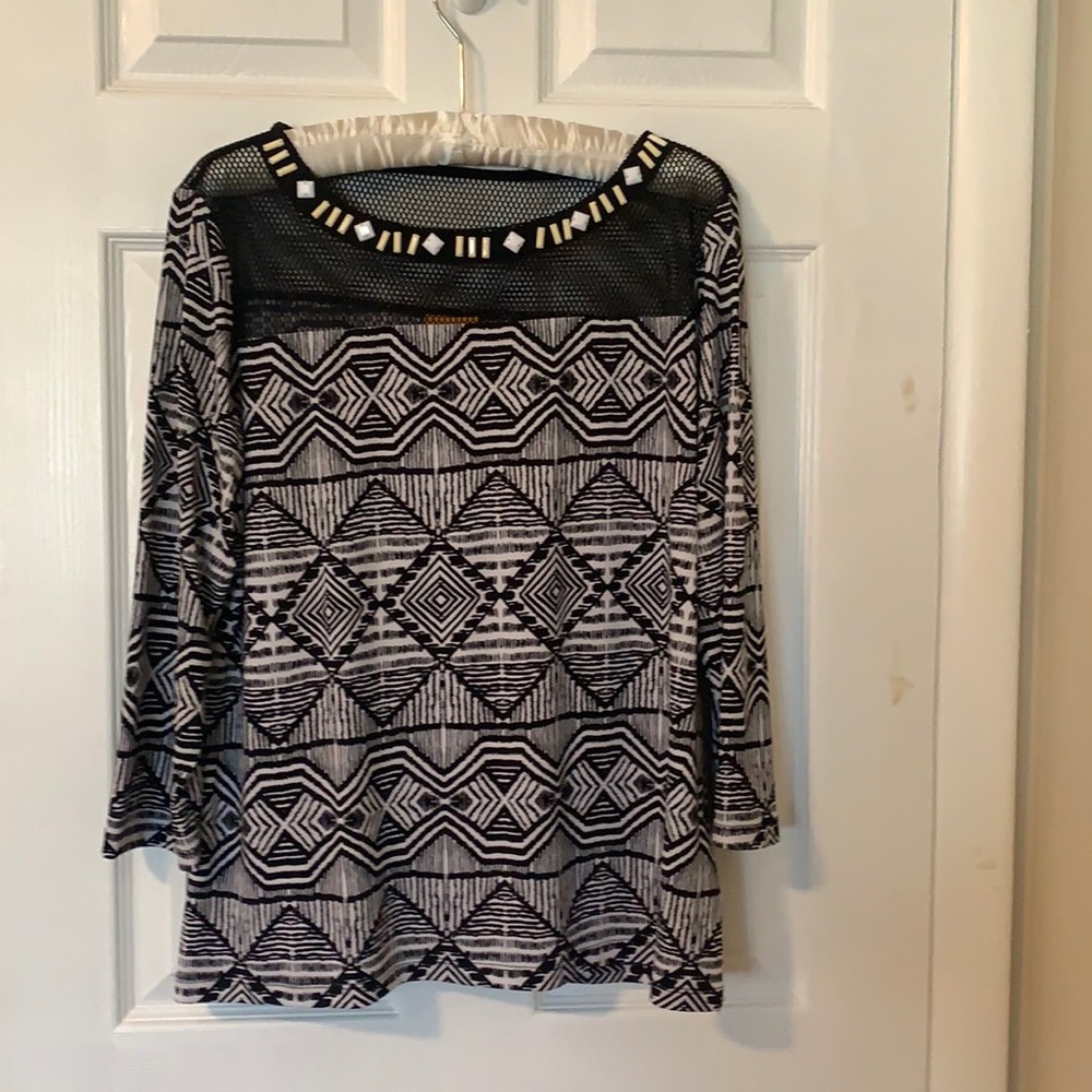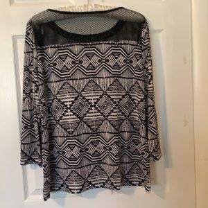 Black and white Ruby Rd patterned ahirt. 3/4 length sleeve.