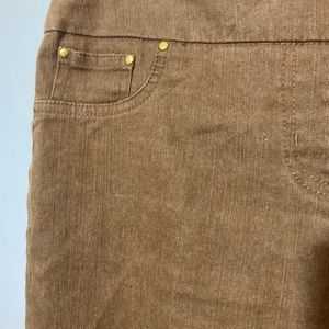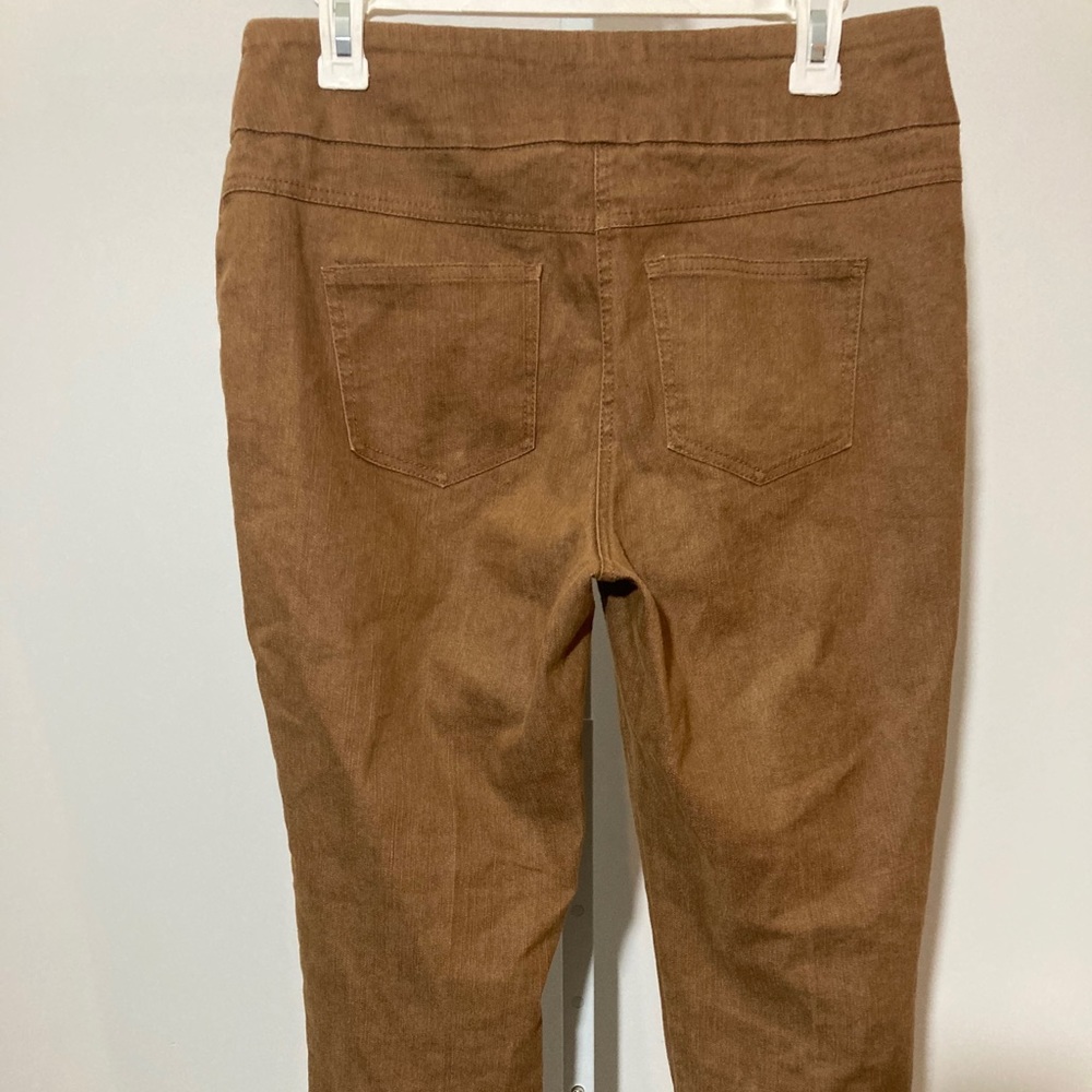 Caramel brown color Has some stretch 2 back pockets Ramie/Cotton/Polyester Mix Size 10p