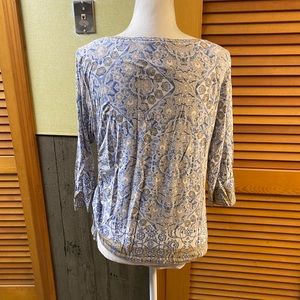 This is a pre owned condition size petite large Ruby Rd top. Nice and stretchy, has a pull tie on the side, 3/4 length sleeve.