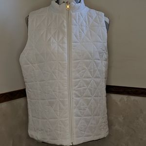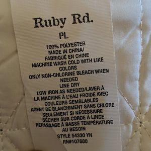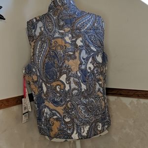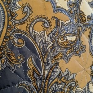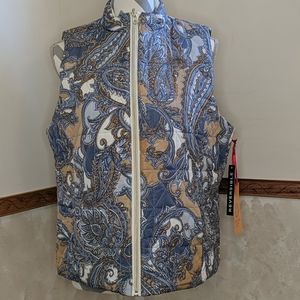 Ruby Rd. Puffer vest. Petite large. Blue and gold paisley. White on reverse. 24" length. 100 polyester. Made in China. Machine wash cold. line dry. NWT.