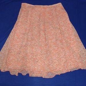 This flowy Ruby Rd skirt is a must have for any one who needs some color or fun in their closet. Peach/white/tan Has a slip attached underneath.
