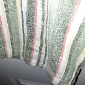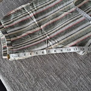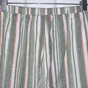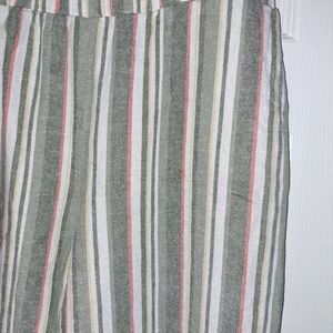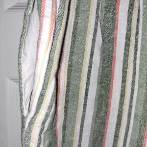 Beautiful Ruby Rd. striped capri pants in green, gray, yellow, pink and white, different widths to give a beautiful design. size S. Made in China of 55% linen and 45% Rayon. for days in the park or on the beach with the family.