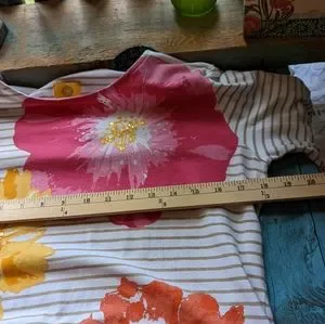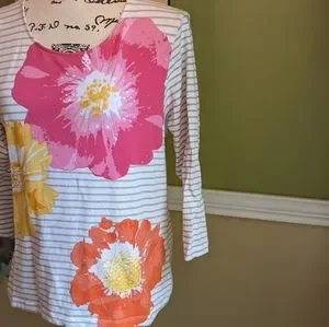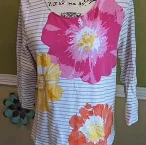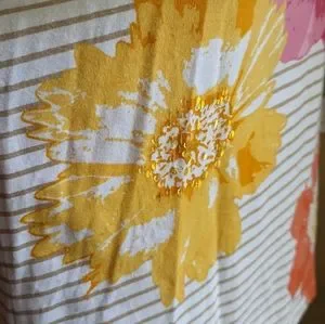 Slip on stretchy embellished with sequins top. Pre owned in EUC. Please reference all pictures they're helpful in the description and sizing.