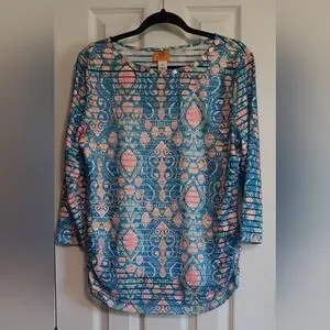 Ruby Road women's top size medium 3/4 sleeve side ruching detail embellished neck