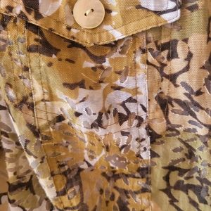 Ruby Rd top, 8 petite. Perfect for fall. This was designed for a shell or camisole to be worn underneath. Sleeves are 3/4 with ties to accommodate rolling up shorter. Look closer at fabric in picture, the design might look like torn fabric at first glance; but is not, it is a sheer fabric design. Worn a few times. In good condition.