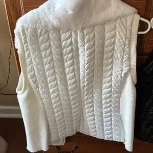 Ruby Rd. petite Large, white quilted vest. Like new zips with fur collar