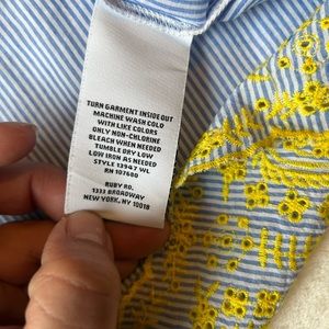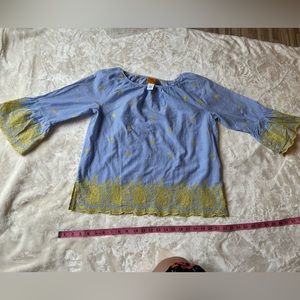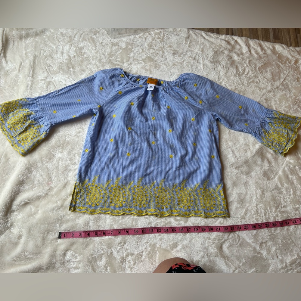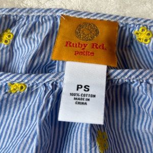 Ruby Rd beautiful pre love woman blouse size small petite, color blue and white with yellow flowers,look at pictures for reference color and mesures (smoke and pet free home)