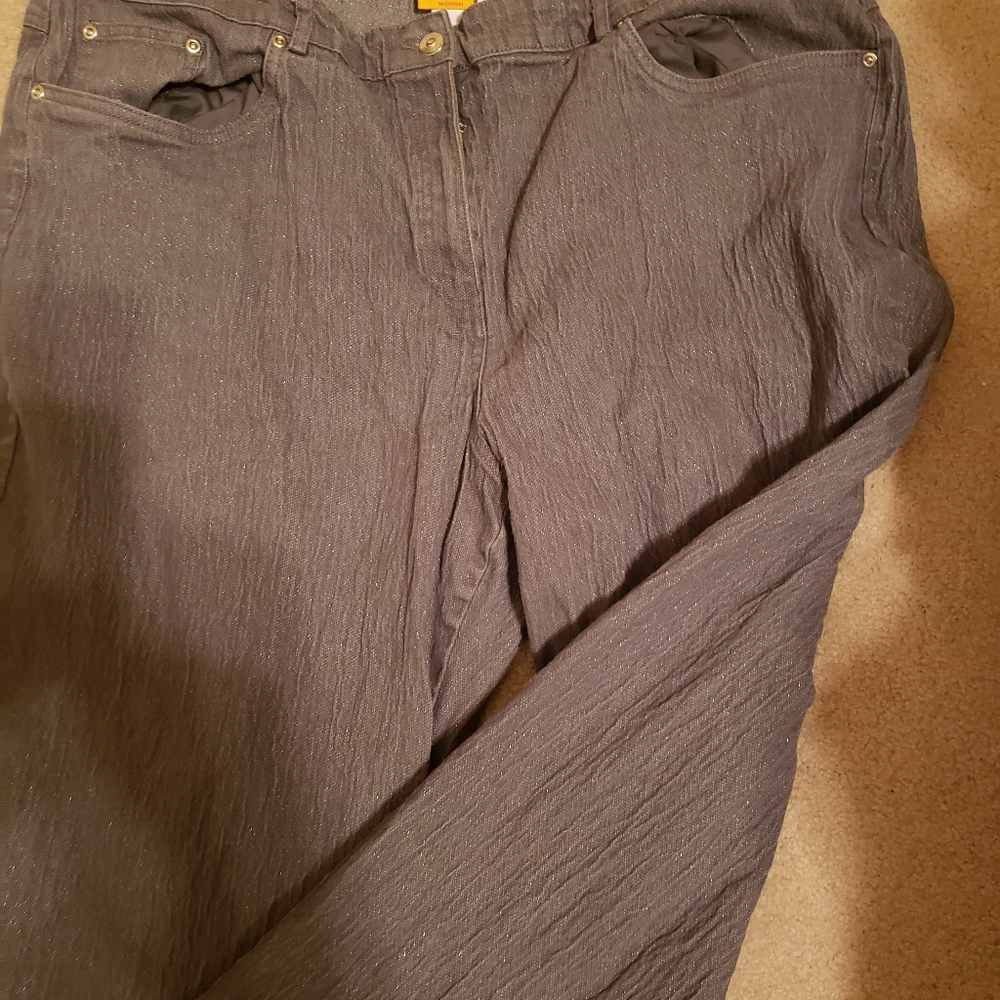 Woman's stretch grey metallic jeans Size 24 EUC