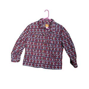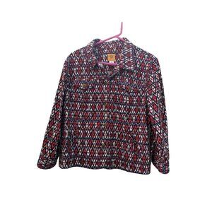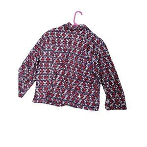 Ruby Rd women jacket size 16 red white blue geometric pockets long sleeve