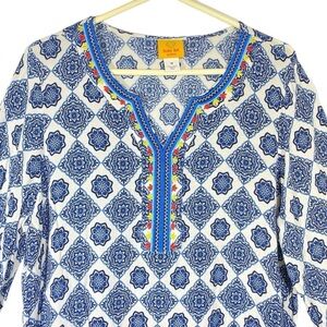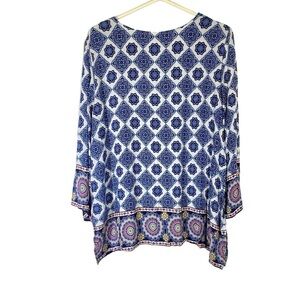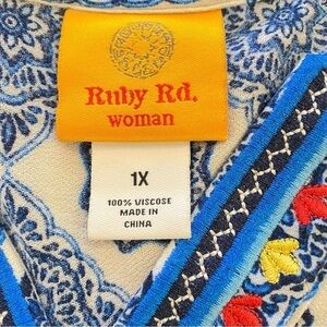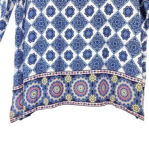 Ruby Rd. women's plus size 1X Riviera boho medallion blue white pullover top