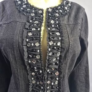 The Ruby Rd Black Embellished Blazer is a sophisticated piece that combines classic styling with ornate detailing. Crafted from a structured fabric, this blazer features intricate black beading along the front, adding a touch of elegance to any outfit. Its cropped design and short sleeves make it perfect for layering over dresses or formal attire, ensuring you stand out at any event.