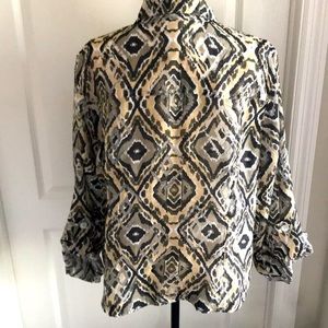 Ruby Rd. Favorites button-down blouse with versatile sleeves that can be buttoned up or worn down. Charcoal, olive green, beige, white, and sheer. NWOT