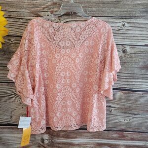"Ruby Rd" Woman's Short Sleeve Blouse, peach/white size:PXL NWT