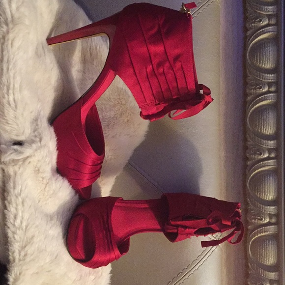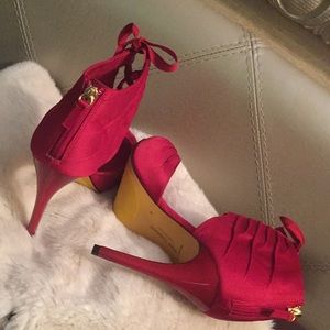 Slightly Worn, Ruby Red Material Madeleine Shoe