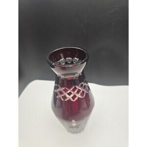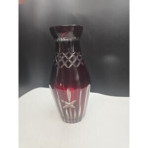 Ruby Red Cased Cut Glass Flower Vase 7.25" H