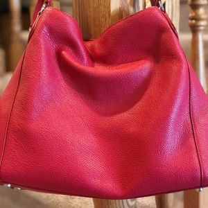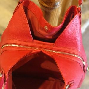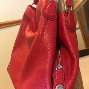 Like Brand New, used one time! Leather Edie 31 Ruby Red Coach Handbag! Silver hardware. Two straps. Two sides with middle zipper compartment.