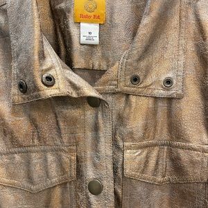 Copper rustic look (see pictures-it’s a worn, copper vibe) only worn a couple of times! Very thin!