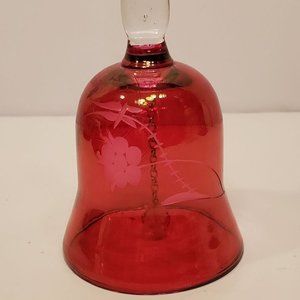 Ruby Red Crystal Glass Bell With Etched
