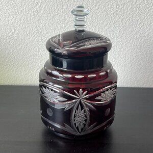 Ruby Red Cut to Clear Crystal Biscuit Jar // 8" Tall Bohemian Glass Canister
