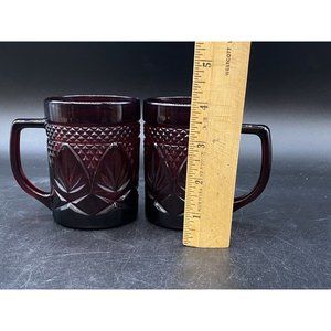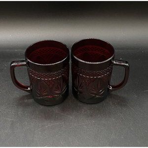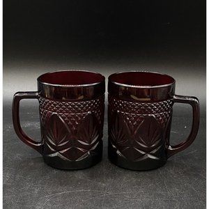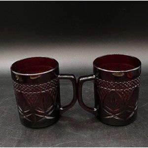 Ruby Red Glass Coffee Mugs Cristal D'arques Durand France Luminarc LOT 2