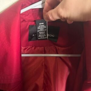 Stay stylish and dry with this stunning London Fog rain jacket! Perfect for those rainy days while adding a pop of color to your outfit.