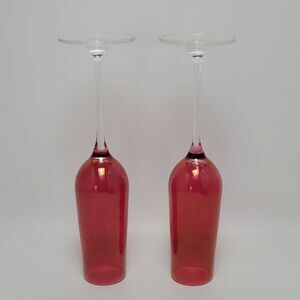 Ruby Red Luster Crystal Champagne Toasting Flutes 9 1/2 Inches
