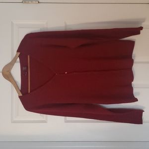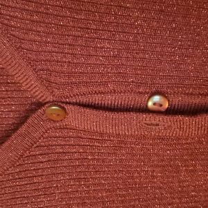 Subtle shine from metallic threads make this cardigan sparkle. Worn once, in excellent condition. 21" across at underarm.