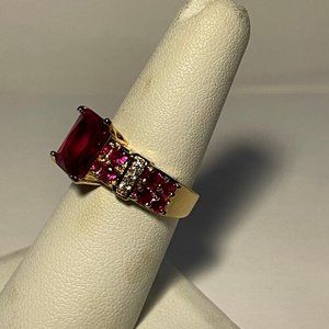 Ruby Red and Gold Fashion Ring SZ 6.5