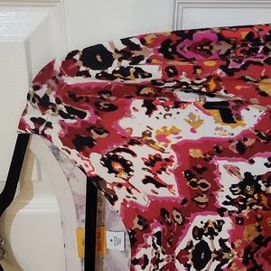 Light knit sweater, with rich warm colors- reds, oranges, pinks, golds and browns. Bought new, never worn. Long sleeves and stretchy material.
