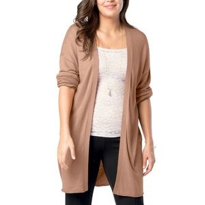 Size Small. A tannish brown color open front cardigan.