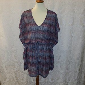 Holy cow! This darling top has just about every color in it so you'll be able to wear it with almost anything in your closet! Looks super cute as a swimsuit cover, and also looks great with jeans and leggings. Light and breezy. Has a V neck, drawstring waist, and a curved hem. NWOT ~ Sample ~ Never Worn