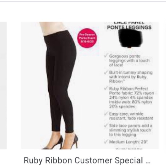Ruby Ribbon Lace Panel Pinterest Leggings in black. Smoothing and slimming, in excellent used condition, from sample rack. Tried on several times, washed 1 time. Size medium.