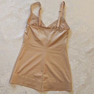 Ditch your bra with this bra-replacement Camisole! Gives you level 3 lift, support, and smoothing, with Ruby Ribbon's special technology and patented fabric. Moisture wicking will keep you dry and cool on the hottest days, and warm on the cold ones. Has a two inch surgical grade silicone gripper edge for a no-budge fit. This style works best for A-C cups. Adjustable straps that also detach in the back and can be criss crossed for even more support. NOTE: This piece ran a size small so please take that into consideration.