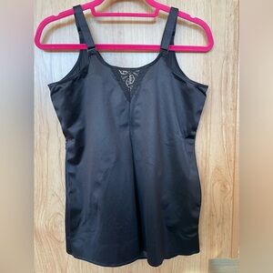 Trade in your bra for Ruby Ribbon comfort and support with a full support Lace style, soft v neck cami. Featuring cups that stretch to accommodate B to G cups easily. The body of the camisole features double fabric in cups and in areas that need extra support. Lace trim under the cups adds a decorative feature and extra support. The bottom inside edge has medical grade silicone gripper to keep the cami from shifting up. The back strap can be adjusted for length.