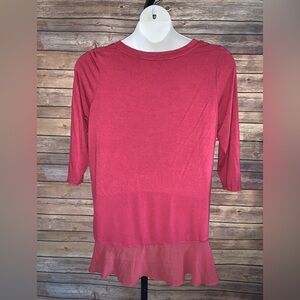 Size Large Ruby Ribbon asymmetrical Hem Ruffled 3/4 Sleeves Chiffon Hem Great Used condition