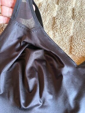Ruby Ribbon Cami Sheer accents top of straps and back triangle.