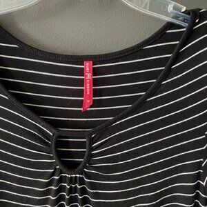 Ruby Ribbon Short Sleeve Tunic T-shirt Dress Black White Stripe Stretch Medium
