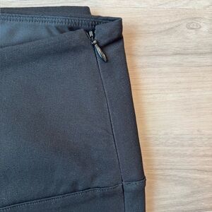 These structured stretch woven fabric stretches in two directions to move with you throughout the day. Has an invisible side zipper closure. Slim straight leg.