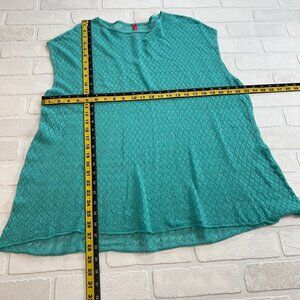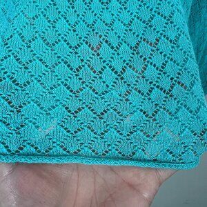 Ruby Ribbon Top Women Medium Large Blue Crochet Open Knit Cap Sleeve Relaxed Fit