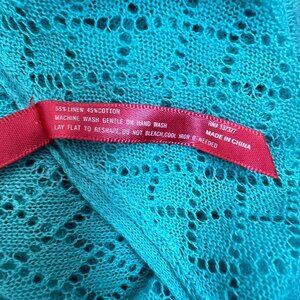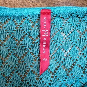 Ruby Ribbon Top Women Medium Large Blue Crochet Open Knit Cap Sleeve Relaxed Fit M/L