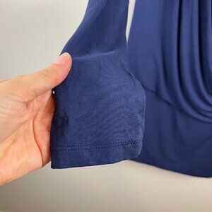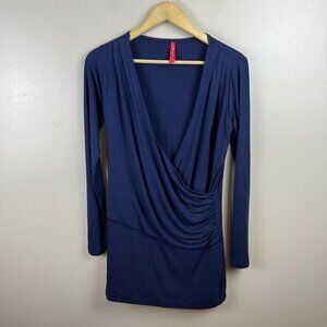 Ruby Ribbon Vivan Tunic Top Size Small Blue Faux Wrap Stretch Navy Blue Casual