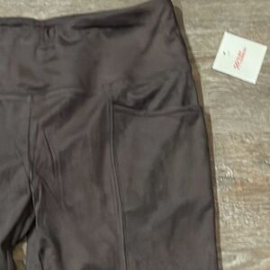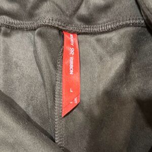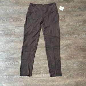 Brown Ruby Ribbon faux suede pull on tummy slimming legging ponte look pants zipper at ankles sz L fitted