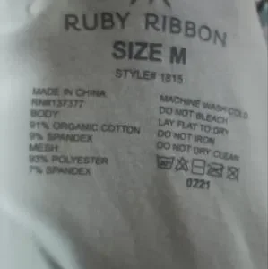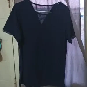 Ruby Ribbon stretchy T shirt with mesh inset triangle on front and back.