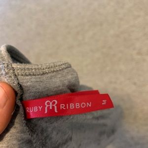 Grey ruby ribbon tank top, wraps around body amd flows in the back, can be tied in the back to secure