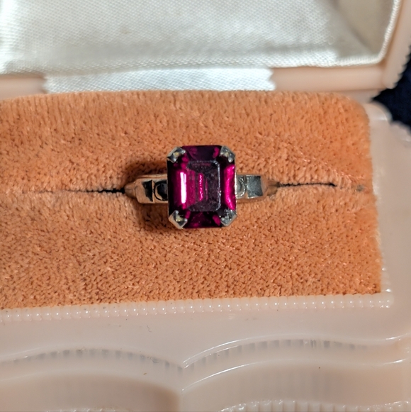 Vintage goldtone adjustable faux Ruby ring.