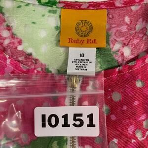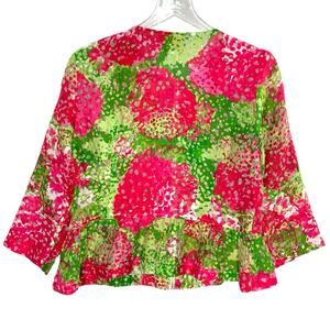 Ruby Road 10 Pink Green Bright Floral Semi Sheer Full Zip Topper Jacket