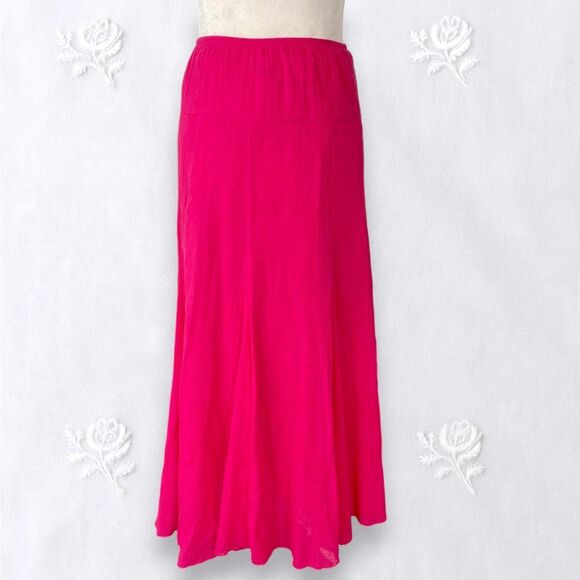 Ruby Road Fairy Coquette Bright Pink Cotton Flowy Full Midi Maxi Skirt 10 / M