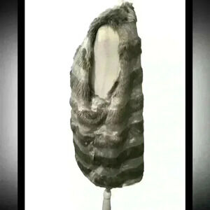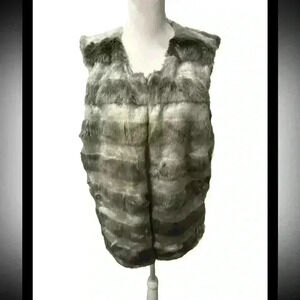 Ruby Road Gray Striped Faux Fur Vest Mob Wife Style
