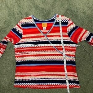 Ruby Road Petite L 3/4 Sleeve V Neck Tee Red/Blue